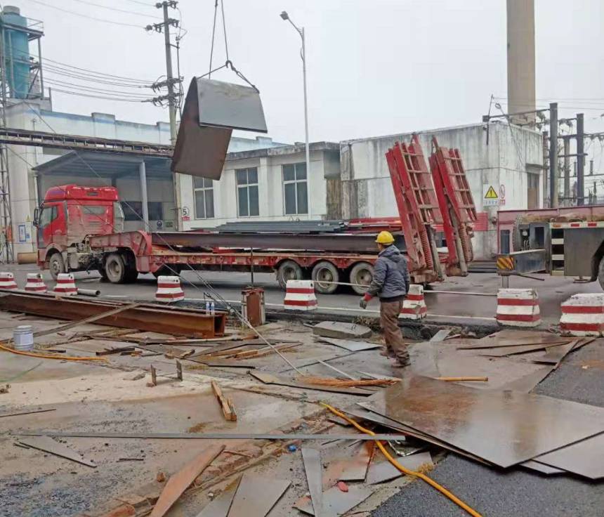 雨后大貨車拉來了新的施工材料,員工正在卸貨,牢記安全第一,地上慢慢減少的材料是工人“戰(zhàn)績”的證明。